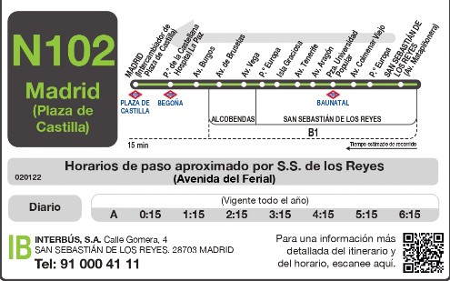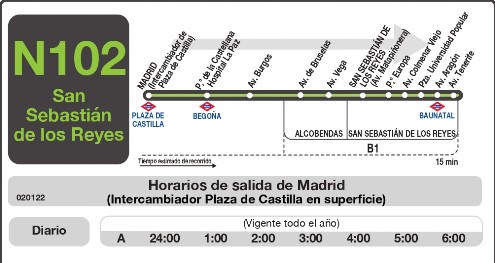 Autobús nocturno línea N102: Plaza de Castilla - Intercambiador Plaza de Castilla