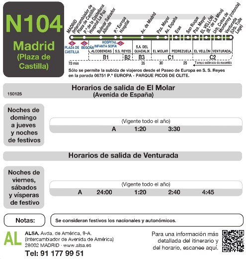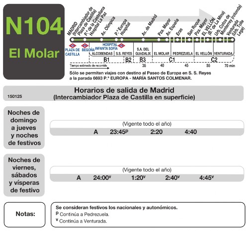 Autobús nocturno línea N104: Plaza de Castilla - Intercambiador Plaza de Castilla